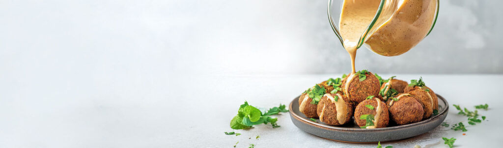 Want a complete meal idea? Build a Mediterranean falafel bowl featuring Hafle Foods Falafel, fresh vegetables, your choice of grains, and a generous drizzle of tahini sauce. This combination provides balanced nutrition with plenty of plant-based protein, healthy fats, and fiber—all completely dairy-free. Explore more Mediterranean bowl ideas that showcase tahini sauce’s versatility.