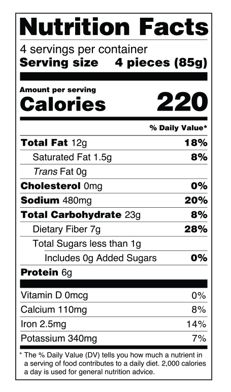 *The % daily values (DV) tells you how much a nutrient in a serving of food contributes to a daily diet. 2,000 calories a day is used for daily nutrition advice